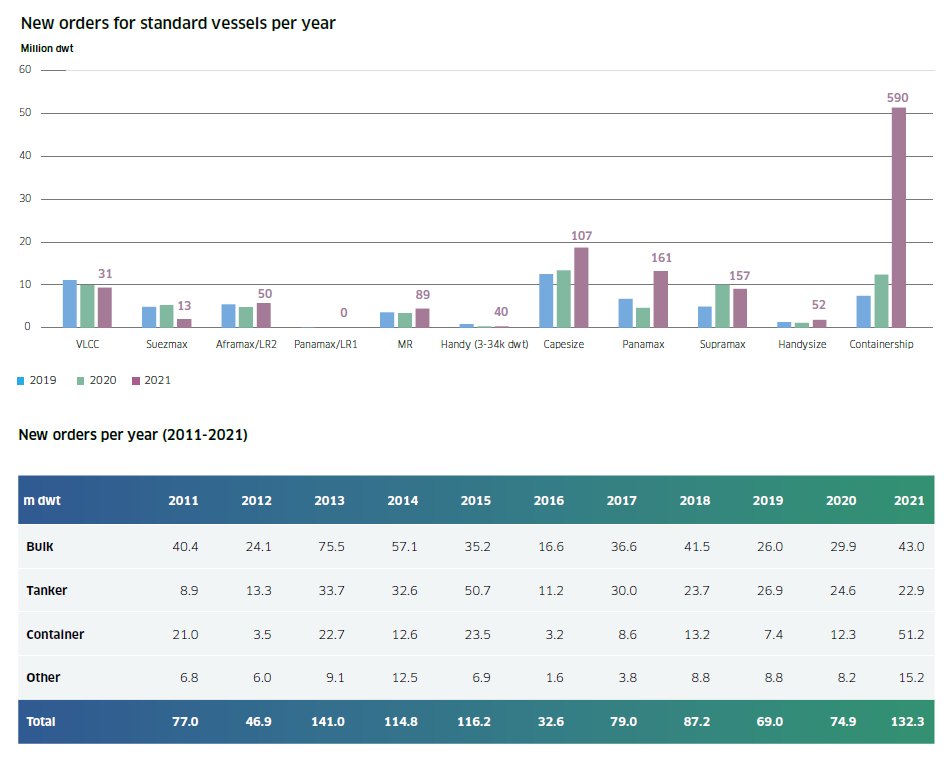 1765艘1.32萬載重噸,2021年新船訂單量創(chuàng)10年來次高