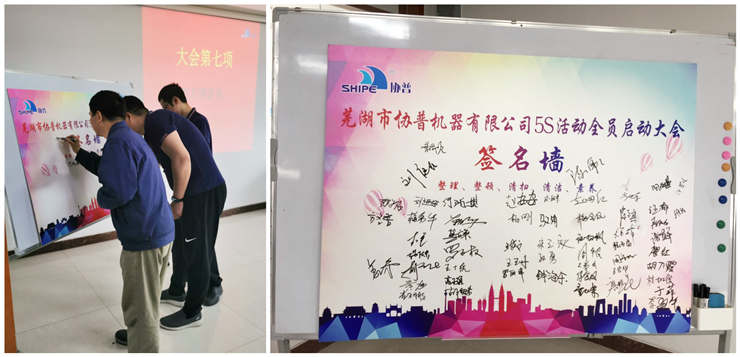全員宣讀完誓詞后大會(huì)進(jìn)入最后一項(xiàng):簽名墻簽名。全體協(xié)普成員陸續(xù)上臺落款簽名,表達(dá)對公司”5S” 管理改善活動(dòng)會(huì)給予全力落實(shí)推進(jìn)。
